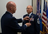 Chief Master Sgt. Tom Mason, the 919th Special Operations Wing command chief, receives a meritorious service medal during his retirement ceremony Aug. 1 at Duke Field, Fla. Surrounded by friends and family, Mason said goodbye to the 919th Special Operations Wing and the Air Force after 33 years of service. (U.S. Air Force photo/Tech. Sgt. Jasmin Taylor)