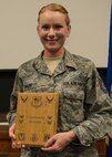 Tech. Sgt. Jasmin Taylor, 919th Special Operations Wing, displays her plaque as second quarter outstanding noncommissioned officer May 3 at Duke Field, Fla. Quarterly awards recognize individuals that exhibit high standards of performance through leadership and job performance, significant self-improvement, and base or community involvement. (U.S. Air Force photo/Tech. Sgt. Cheryl Foster)