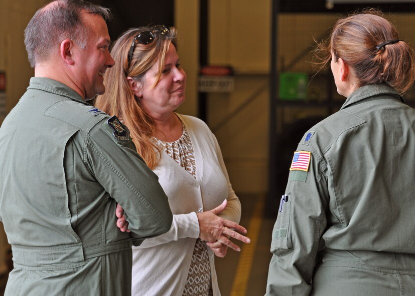 Cathy Haverstock, the Military Legislative Assistant to Sen. Bill Nelson of Florida, visits with commanders at Duke Field, Fla., Aug. 19. Haverstock toured the base and received key updates on the evolving 919th Special Operations Wing missions. (U.S. Air Force photo/Dan Neely)