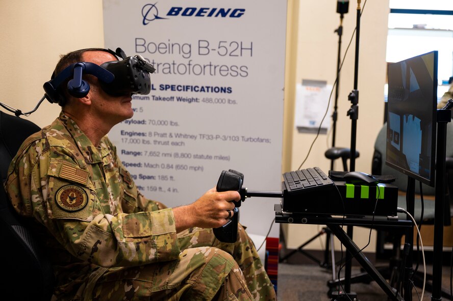 U.S. Air Force Lt. Gen. John P. Healy, Chief of Air Force Reserve and commander of Air Force Reserve Command, participates in a virtual reality refueling exercise at the 93rd Bomb Squadron at Barksdale Air Force Base, Louisiana, June 4, 2023. The virtual reality refueler has helped students in the B-52 Stratofortress Formal Training unit train faster while reducing training sorties. (U.S. Air Force photo by Airman 1st Class Justin Moore)